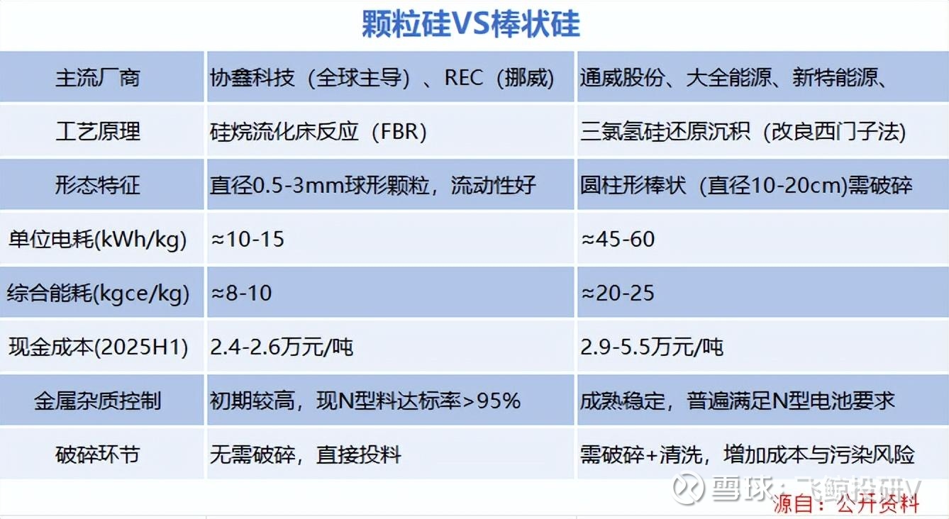 而协鑫科技则另辟蹊径,通过FBR硅烷流化床法生产颗粒硅,将综合电耗降至13.8kWh/kg,仅为棒状硅的四分之一,成本优势自然不言而喻。