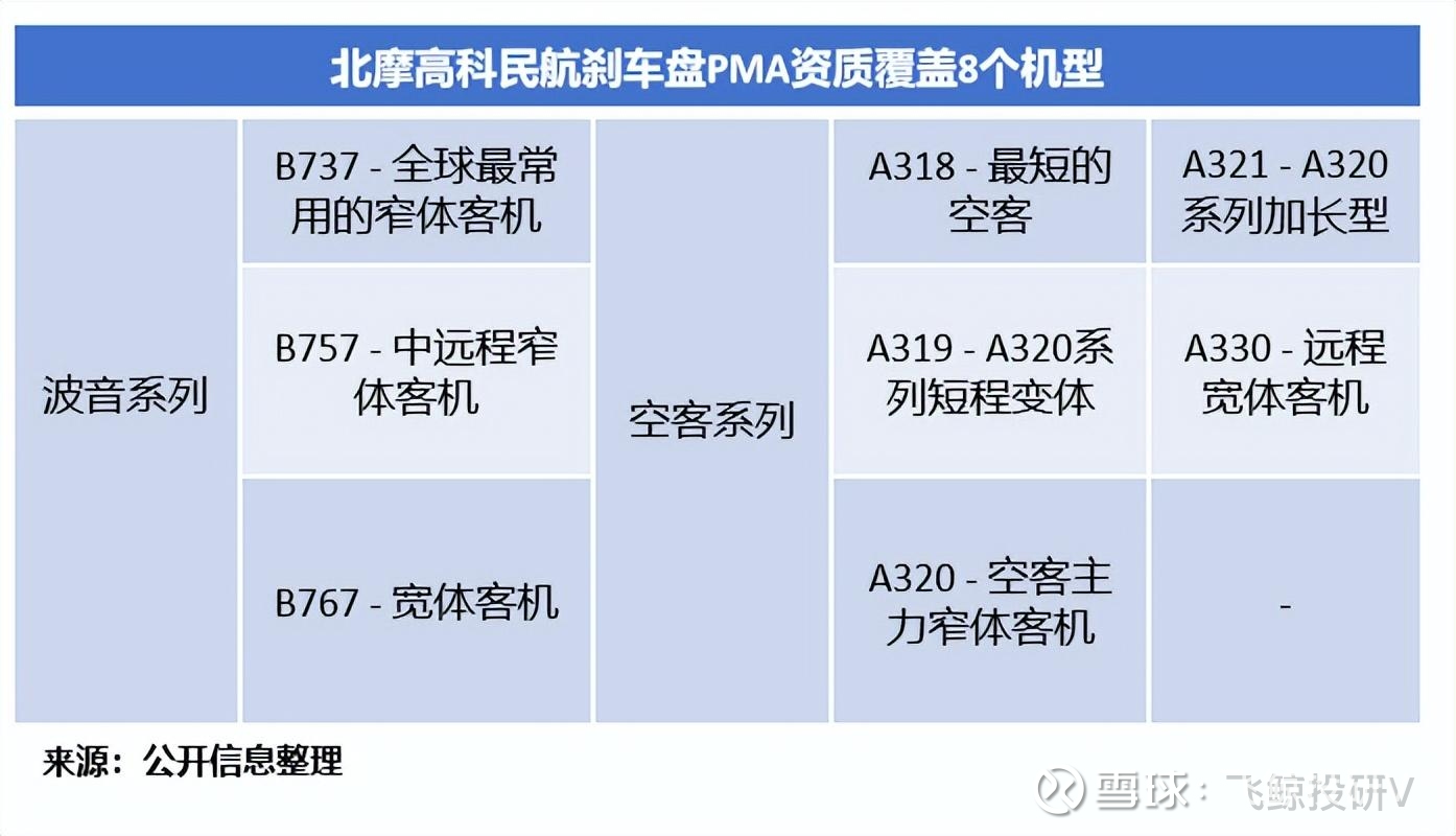 北摩高科的刹车盘业务分为军品及民品两类;其中,在民品方面,公司率先拿下空客碳刹车盘PMA认证,累计拥有8个民航飞机刹车盘PMA资质。