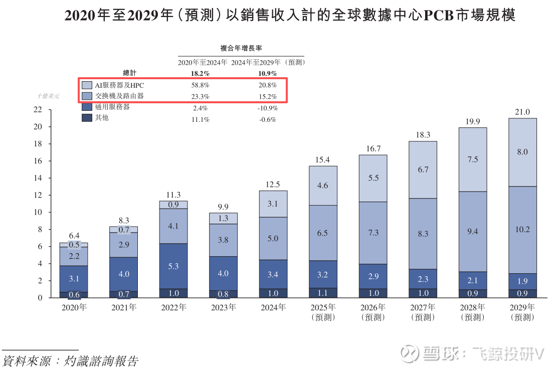 行业数据显示,2024-2029年全球AI服务器PCB市场规模复合年增长率预计高达20.8%,明显比交换机及路由器PCB的市场增速快得多。