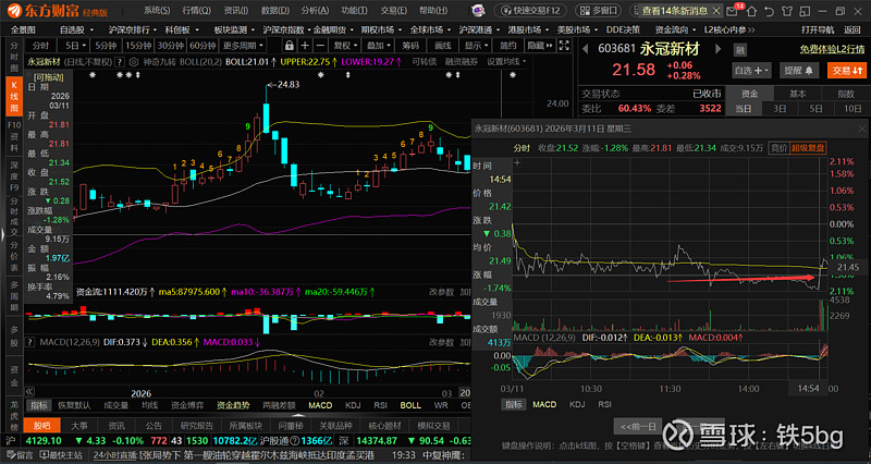 不过,其实永冠新材的股票昨天收盘的时候就出现了做盘强拉的迹象,只不过我没经验,没有想过最差的结局,而这时结局往往是最差的