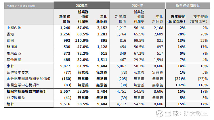 周末不搬砖的时候看了下$友邦保险(01299)$ 2025年报,泛亚经营确实是促进新业务价值长期成长、熨平单一地区地缘/宏观风险的巨大优势。