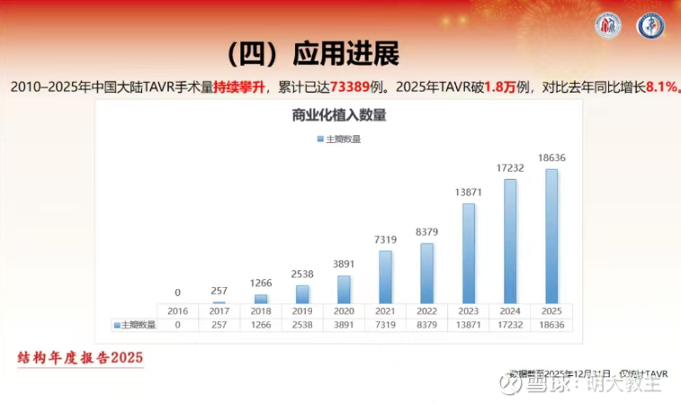 结构性心脏病年度报告委员会发布的《经导管主动脉瓣置换2025年度报告》显示,2025年我国TAVR植入量18636例,同比增长8.1%。