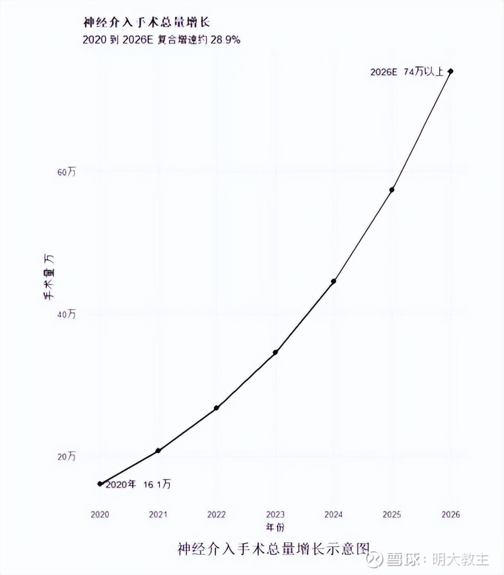 北京大学医学部发布的《神经介入高值耗材行业研究报告》预测,神经介入手术量将由2020年16.1万例增至2026年74.1万例。