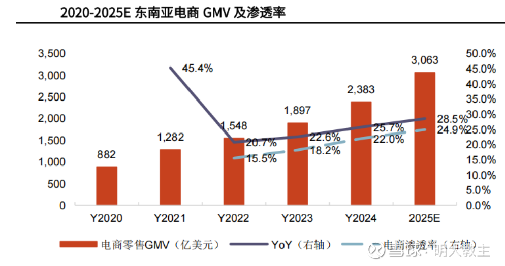 贝恩咨询、淡马锡联合发布的《2025年数字经济报告》显示,2025年东南亚地区数字经济GMV首次突破3000亿美元,达3050亿美元,同比增长15%,远高于全球电商4.2%的平均增速。