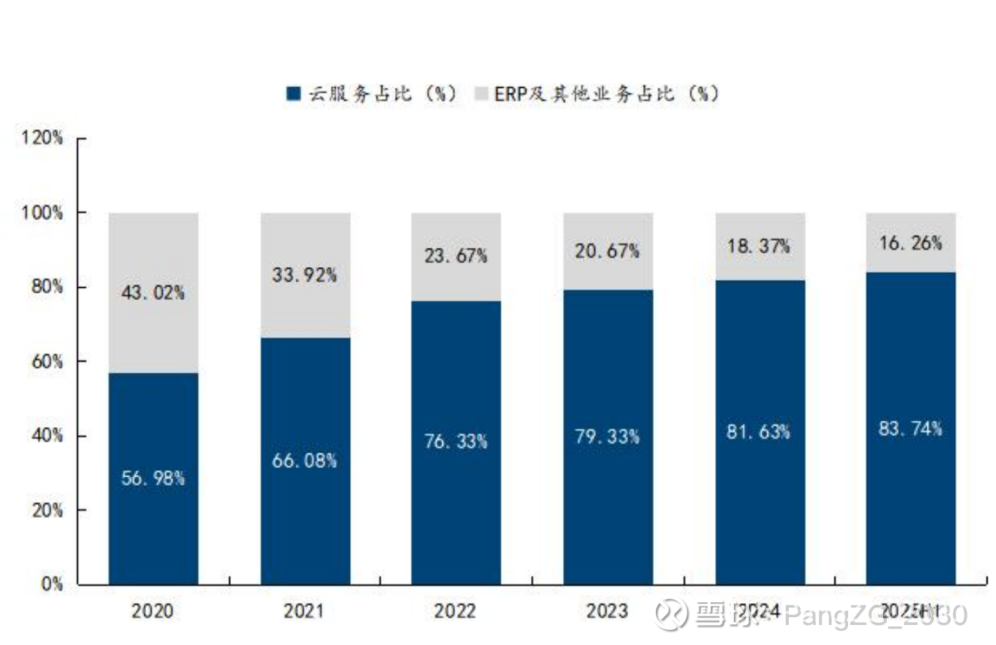 2、金蝶在中国市场的 SaaSERP、财务云、财务和会计应用云、司库管理云、EPM、税务、PLM 云等多个细分领域均位列第一。同时,金蝶也是国内较早、较成功地进行了 云战略转型,在25年的云服务收入占比 超80%。