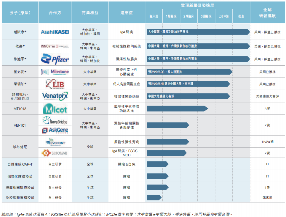 依托这套经过市场检验的核心逻辑,云顶新耀当下正以“BD引进+自研”双轮驱动,系统深耕完善肾科、心血管/代谢、急重症、自免以及mRNA五大领域的布局,从单一肾病爆款,朝着多管线、多赛道的发展。