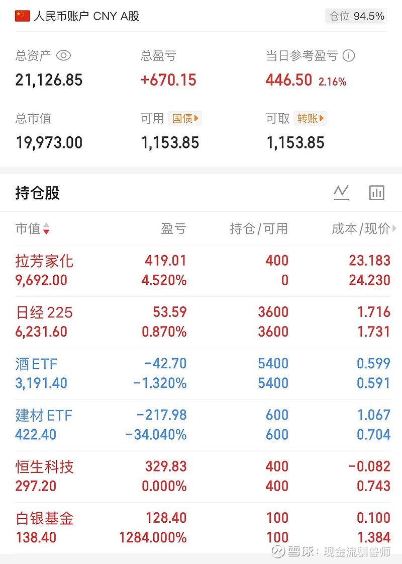 因为同花顺被禁言了,记录帖子在这发吧!早盘进了拉芳家化和日经ETF!本来是梭哈战法,因为过于激进,所以分仓!拉芳的周线图出现低背离!周日图形成W双支承,日图乐观一点可能发展成上升三角的上升中继,第二有政策支持,因为有点激进,买了日经!日经出现了关键位十字形,下跌不动了!止盈在前高,止损在前低!没有收盘以我买时的K线为准!仅练习记录,不构成投资建议