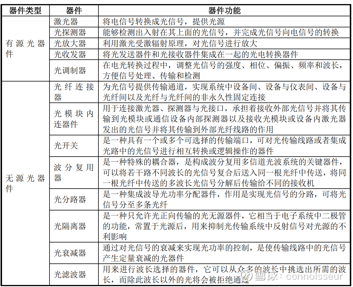 有源光器件负责光信号的产生,将电信号转换为光信号、光信号转换为电信号以及发射、接收光信号等工作