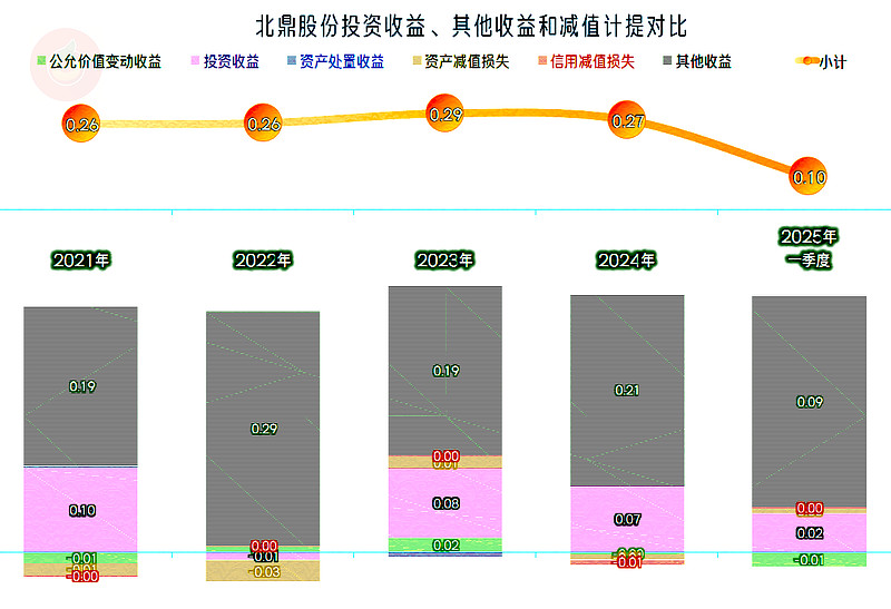 在其他收益方面,每年都是净收益的状态,收益主要来源于政府补助和少量投资收益,净收益水平还比较稳定。