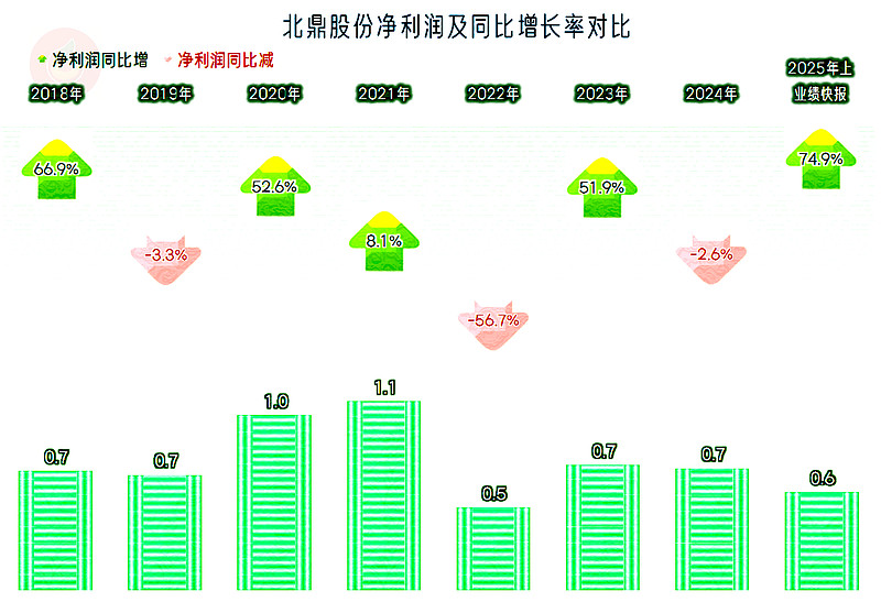 净利润的峰值也是2021年创下的,后续年份重新进入“俯卧撑”模式,2025年上半年同比大增近3/4,全年也是有望创下新纪录的。