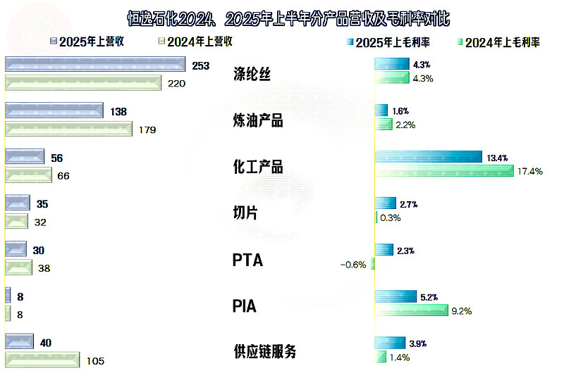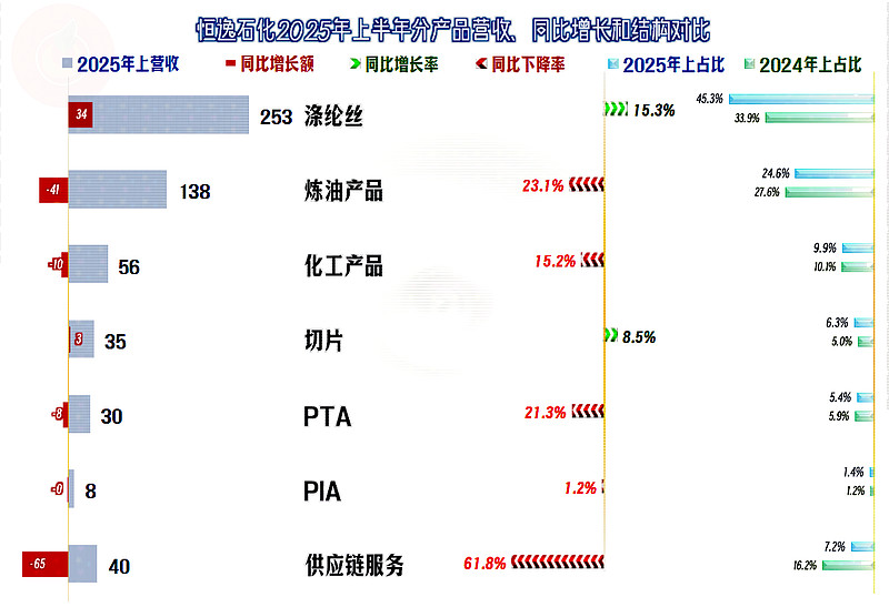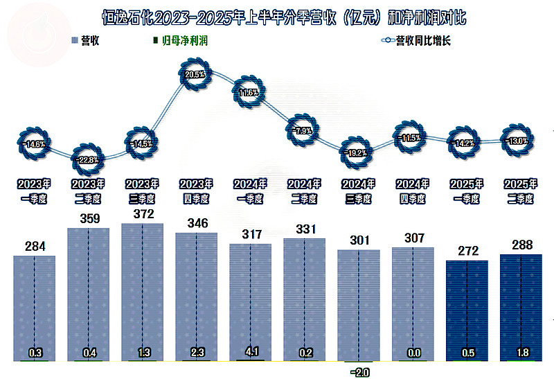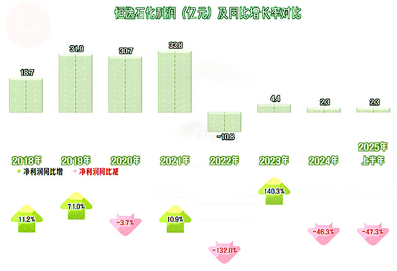 2025年上半年,恒逸石化的营收同比下跌13.6%,这是在前两年下跌基础上的持续下跌,对于化工生产企业来说,这样的跌幅,就已经是比较严重的问题了。
