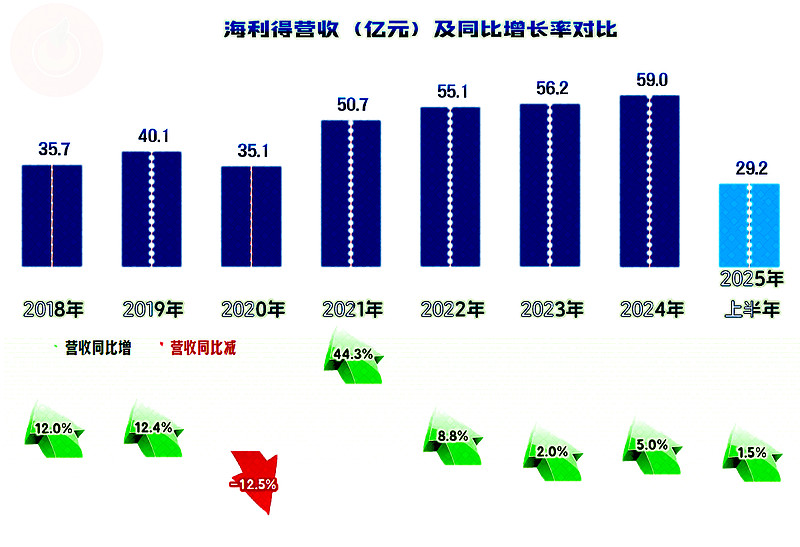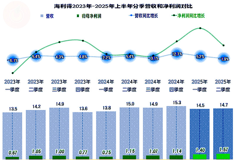 2025年上半年,海利得的营收同比增长1.5%,虽然已经是连续四年半保持增长状态了,但最近三年半,特别是2023年以来的两年半,同比增速都没有超过5%,一直是低速增长状态。
