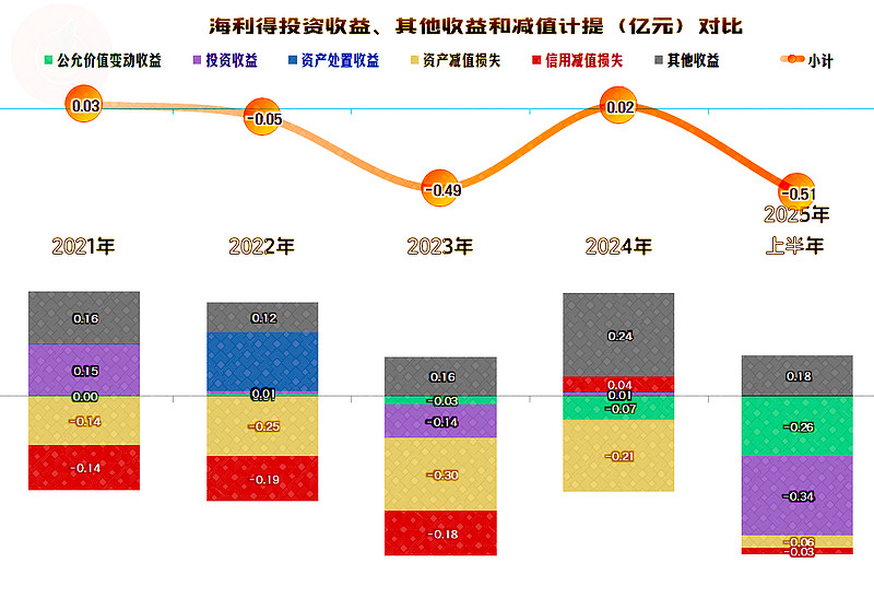 不放在主营业务那边,就要放在其他收支这边,因为不管什么准则,多赚了和多赔了的事实是不可能因为准则不同而改变的。海利得在其他收支方面总体稳定,只有2023年和2025年上半年的净损失相对较大。