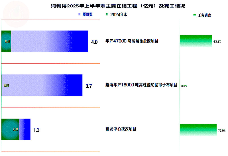 主要在建的生产项目有两项,“越南年产18000吨高性能轮胎帘子布项目”是新开工不久的,“年产47000 吨高端压延膜项目”已经部分开产,离全面完工已经不远了。并非是不发展,而是适当控制投资的规模,稳步发展。