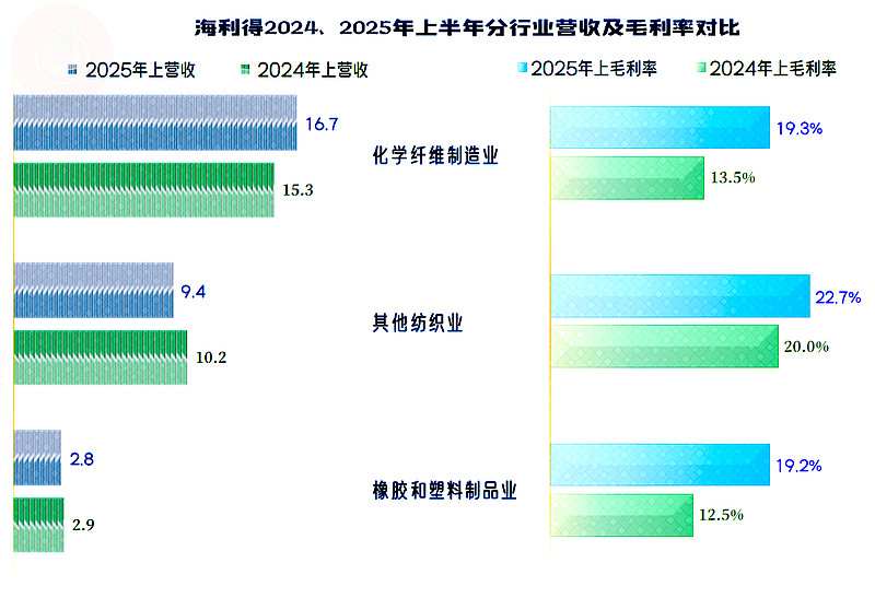 “化学纤维制造业”仍然是其核心行业,也是单列的唯一增长的行业,占比接近六成了。“其他纺织业”是其占比1/3左右的第二大行业,“橡胶和塑料制品业”也是占比一成的重要行业,但这两大行业的营收都在下跌。可以说,海利得的业务还是主要聚焦在其核心的化纤及相关行业方面。