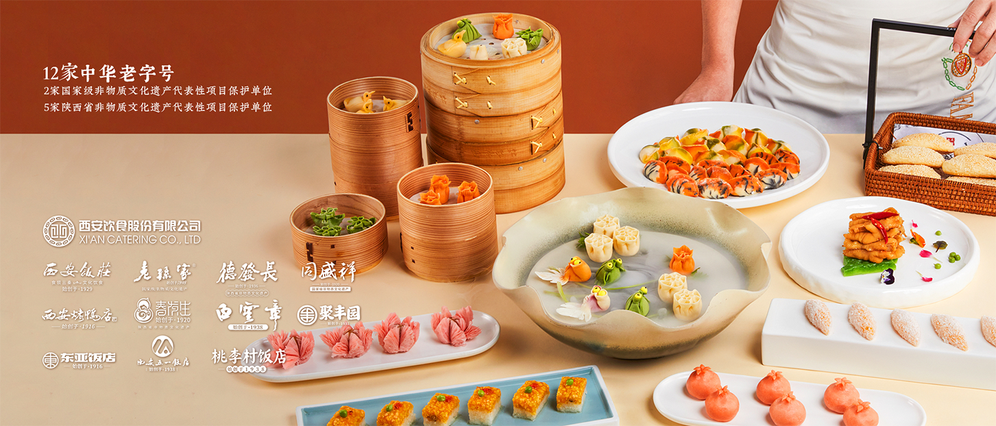 西安饮食所属西安饭庄、老孙家饭庄、德发长酒店、同盛祥饭庄、西安烤鸭店、春发生饭店、东亚饭店、大香港酒楼、白云章饺子馆、清雅斋涮锅大王、聚丰园饭店、五一饭店、新中华甜食店、常宁宫园林酒店、字号兴·IN食西安老字号美食集合、易俗社文化街区IN食西安老字号集群、西安桃李旅游烹饪专修学院、西安大业食品有限公司、西饮呀米食品公司、餐饮服务分公司、印食先品牌公司,其中12家餐饮企业被认定为“中华老字号”。