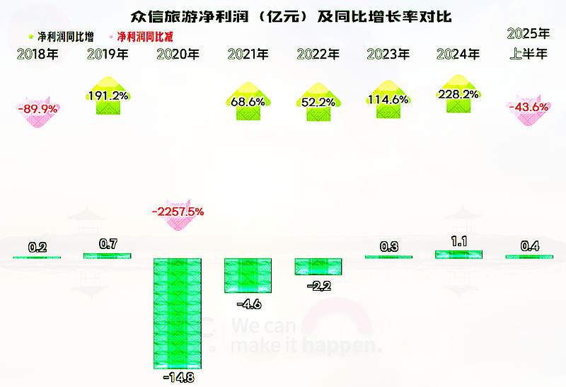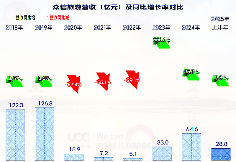 2025年上半年,众信旅游的营收同比增长了9.8%,结束了前两年的“报复式增长”,算是进入“正常”增长模式。但是,疫情前的年营收可是120亿元以上的规模,报复式增长怎么在60多亿元就结束了呢?