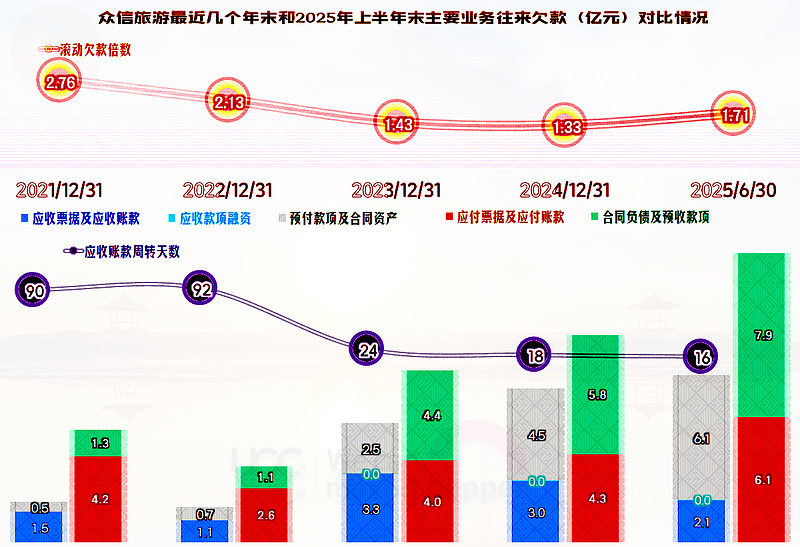 资产负债率在2021年末相当夸张,2025年上半年末为74.4%,仍然是偏高的水平。前几年“缩表”(总资产下降)的现象,在2024年末已经转换,2025年上半年末大幅增长,主要是业务往来上的欠款增长明显,这也是营收增长所带来的“扩表”。