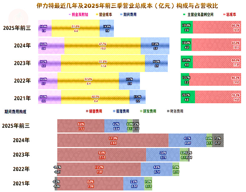 伊力特的毛利率在50%左右,这和我们看过的其他很多品牌的毛利率相比要低很多。不过,高低总是相对的,和其他一些传统行业相比,这也是暴利。2025年前三季度,49%的水平并不算这些年最低的,至少有三年都低于这一水平。