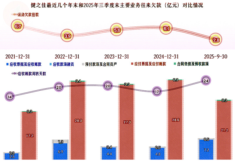 2025年三季度末的“应收票据及应收账款”大幅增长,应收账款周转天数也大幅上升。这当然是不好的信号,不仅会导致营运资金的占用增加,还可能导致未来期间的“信用减值损失”上升。和其类似的对经营活动的现金流量也有较大影响的是,“应付票据及应付账款”的下降,当销量增长变慢时,多占用供应链的款项就不现实了,这就是所谓的出来混,迟早是要还的。