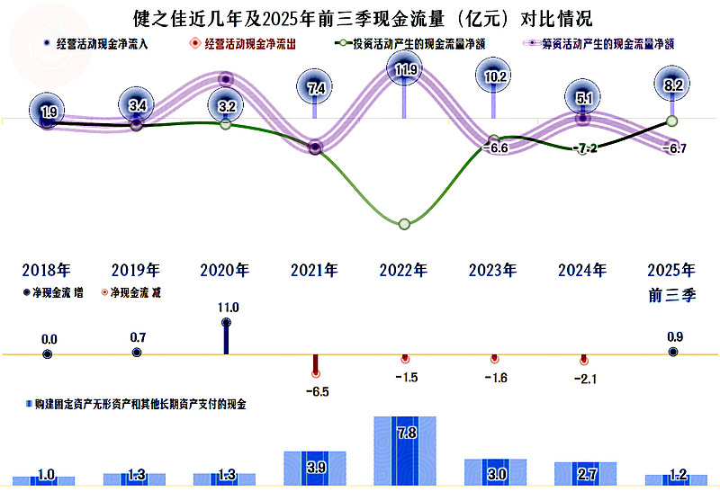 “经营活动的现金流量净额”表现较好,从2024年以来的净利润下降,对此影响不是太大,看起来2024年和2025年前三季度的现金流并不明显差于前些年。