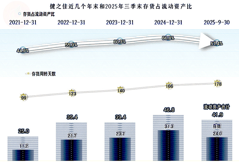 存货规模较大,占流动资产比偏高,是其速动比率较低的主要原因,2025年三季度末的存货大幅下降,短期内其存货周转天数还在增长。实际上后续期间应该会逐步下降的,因为增长的原因是算的平均存货规模,也就是年初的高水平对现在还有影响。不管是什么情况,这方面是可以回收大量营运资金的。