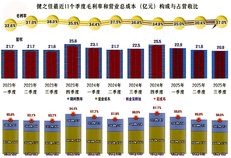 怪不到毛利率方面,2024年的毛利率只微跌了0.1个百分点,2025年前三季度反弹后还高于2023年,这近两年的盈利表现不佳,与毛利率基本无关。
