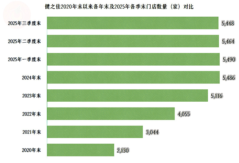 健之佳的门店以中心城市为核心向县级市场渗透,区域覆盖西南、华北7个省市,形成由区域走向全国的格局。截至2025年一季度末,全国门店数5,490家,规模为上市初的2.5倍。