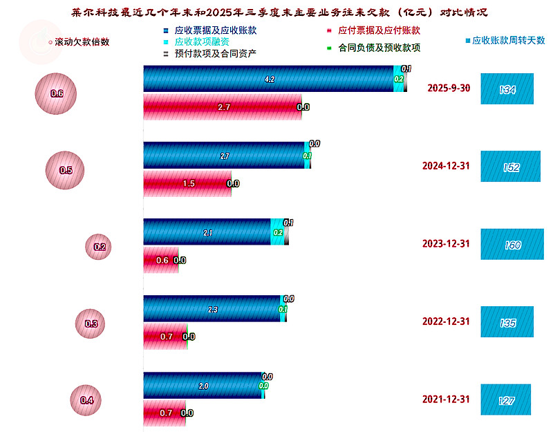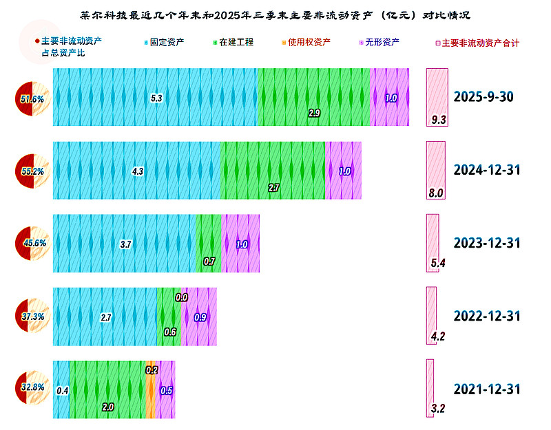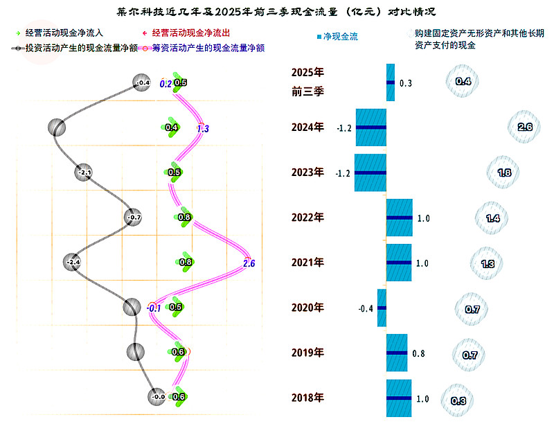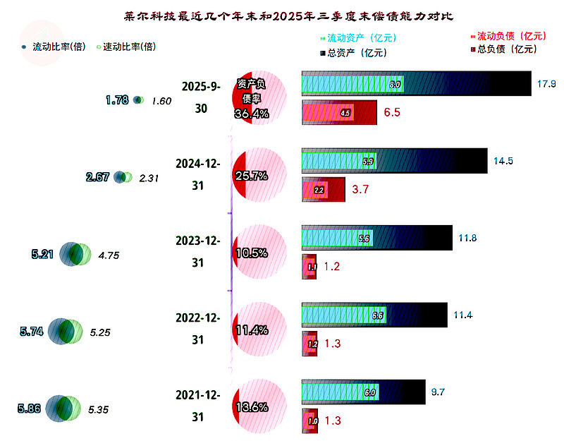 莱尔科技的长短期偿债能力都很强,2025年三季度末两者都有明显下降,主要是其扩表导致的,主要的影响因素就是我们刚看到的应收和应付类的业务款项都有较大幅度增长,还有经营性长期资产的增长。其有息负债的规模比较低,我们就不细看了。