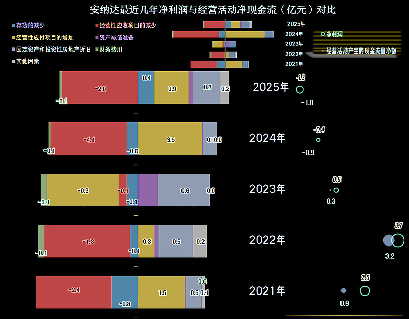 主要是应收项目的增长,导致了“经营活动的现金流量净额”的表现不好,通过应付项目来消化的努力,效果一般。存货的影响在2025年变成了回收资金,这是营收下降期的正常表现。