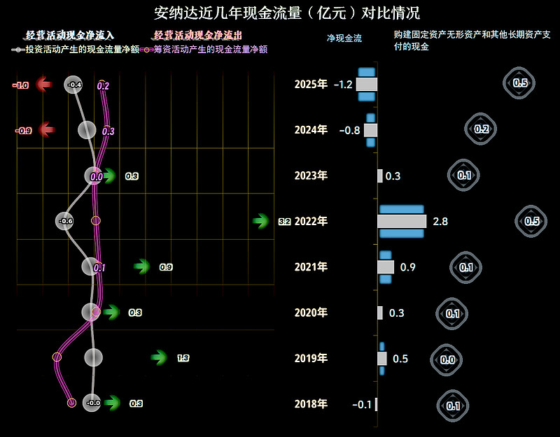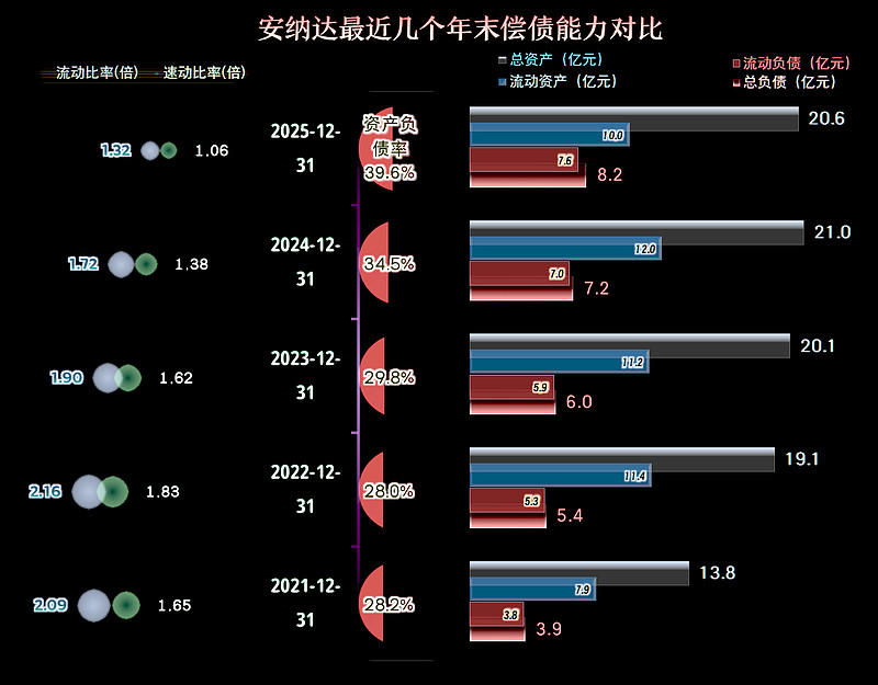 安纳达的长短期偿债能力虽然在下降,但总体仍然正常。后续期间可能还会亏损,偿债能力仍有下降的趋势,但考虑到其强大的靠山,似乎问题也不大。
