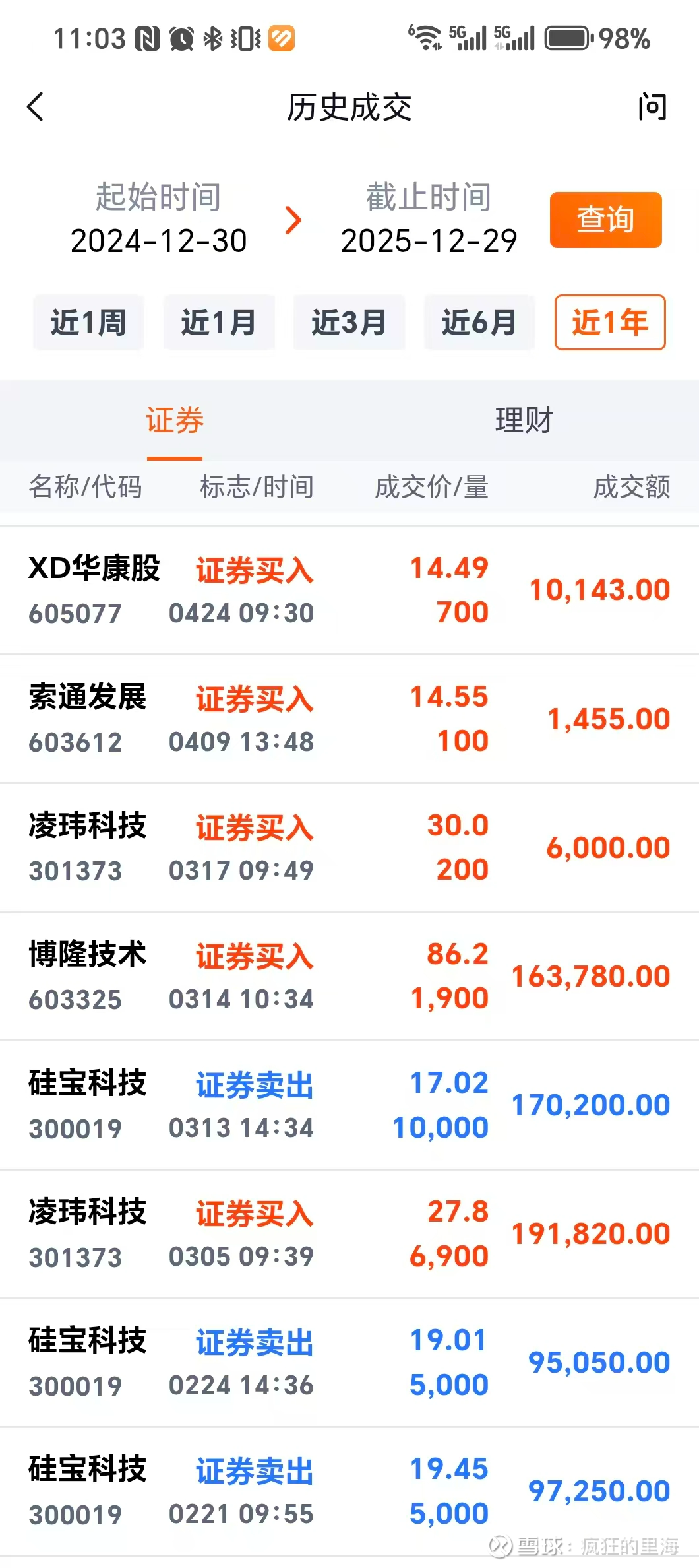 全年的操作,基本上波澜不惊,基本上满仓穿越,特朗普搞关税战的时候,我满仓挨打,7-9月份行情比较好的时候,我也在场。年初的时候,持仓硅宝科技20000股,索通发展31400股,华康股份22960股,另还有几百块闲散资金,账户处于满仓状态,持仓市值105.59万元。全年的操作明细如下: