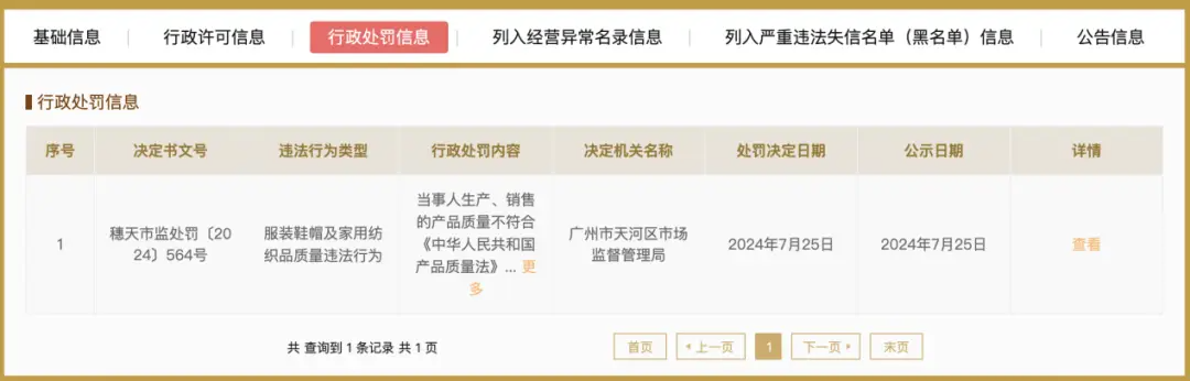 2024年7月25日,广州市天河区市场监督管理局也因此对金利来(中国)有限公司广州分公司给予了罚款3000元;没收违法所得812元的处罚。