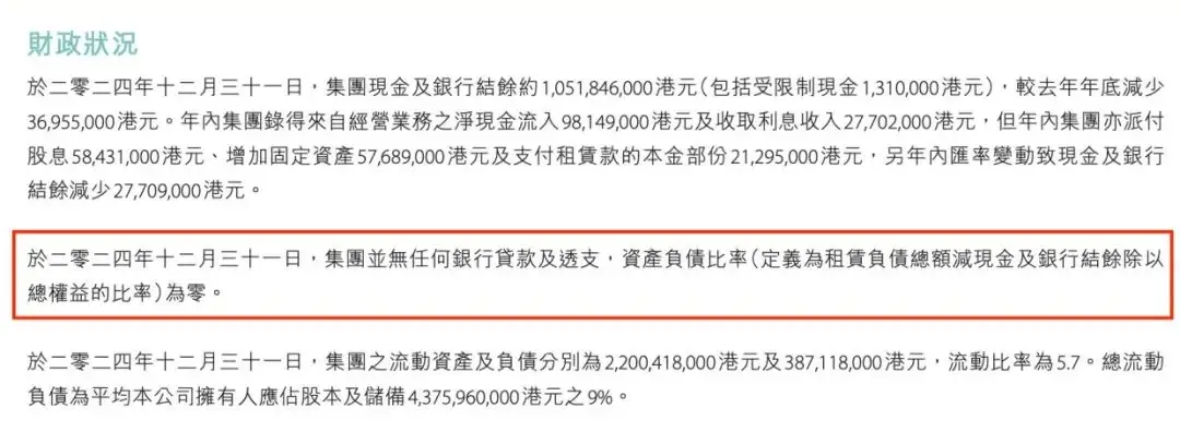 曾智明将上述理念贯彻至今,在2024年财报中,金利来披露的公司资产负债率为0,没有任何银行贷款及透支。