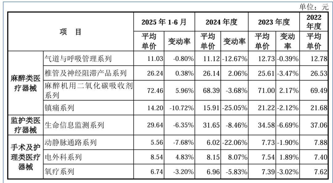 尤其是核心产品气道与呼吸管理系列(公司核心品类)、镇痛、动静脉通路等系列,降幅较大。仅少数产品系列如椎管与神经阻滞、电外科单价小幅上升。