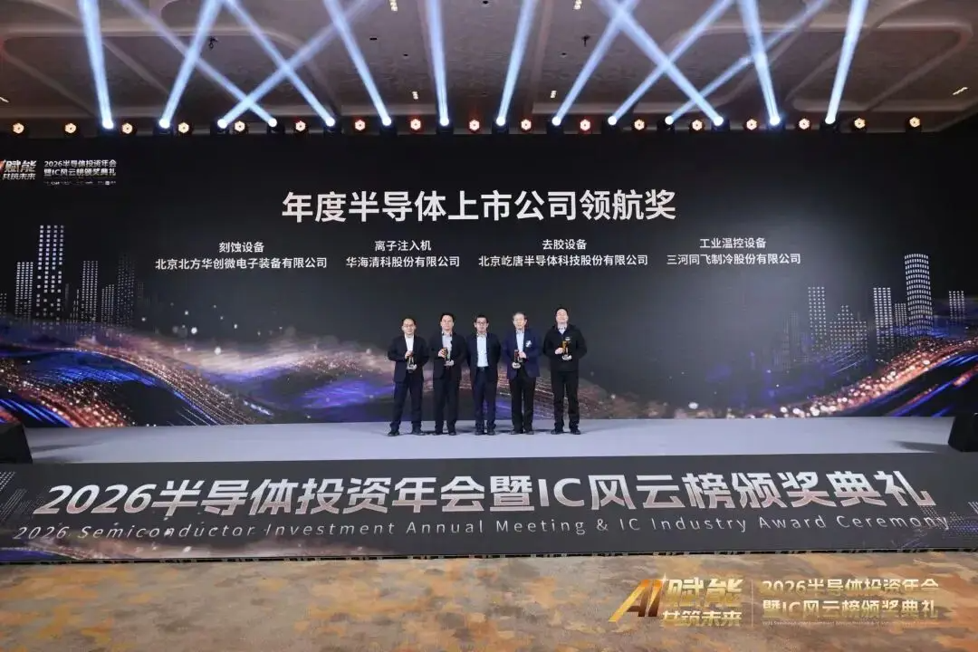 2025年12月20日,由半导体投资联盟和集成电路投资创新联盟主办、ICT知识产权发展联盟协办、爱集微承办的“2026半导体投资年会暨IC风云榜颁奖典礼”在上海前滩华尔道夫酒店成功举办。北京屹唐半导体科技股份有限公司(简称:屹唐股份)荣获“年度半导体上市公司领航奖(去胶设备)”。