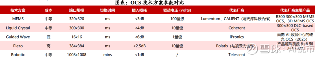 目前谷歌TPU V7 Ironwood即将全面上市,开始配置1.6T光模块,OCS主要采用MEMS和液晶方案,其核心部件MEMS 阵列、光纤阵列、发射/接收模组及其光学器件、钒酸钇晶体、光模块、环形器、光源等供应商均有望受益。