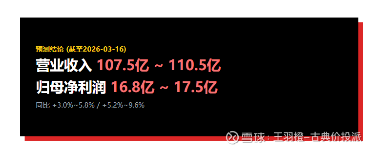 营收预测 107.5亿 - 110.5亿元,增长 +3.0% - +5.8%。