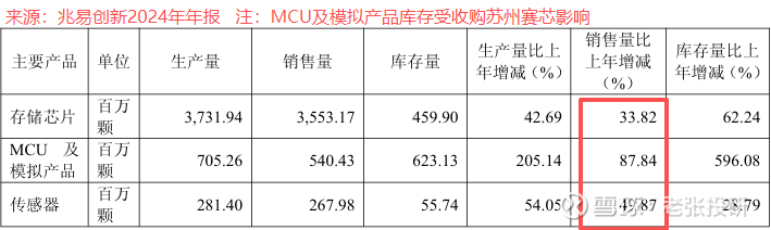 2024年公司一年卖了43.62亿颗,其中存储芯片销售量达到35.53亿颗,同比增长33.82%,MCU微控制器以及模拟芯片销量达到5.4亿颗,同比增长205.14%,实现翻倍。