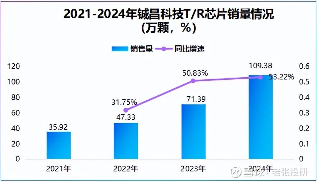 2021-2024年,子公司铖昌科技相控阵T/R芯片销量从35.92万颗增长到了109.38万颗,印证了需求的旺盛。