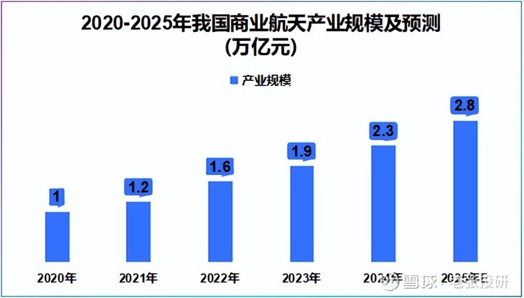继2020年我国商业航天产业规模首次突破万亿元后,继续以约23%的年复合增速增长到了2024年的2.3万亿元,预计2025年将攀升至2.8万亿元。