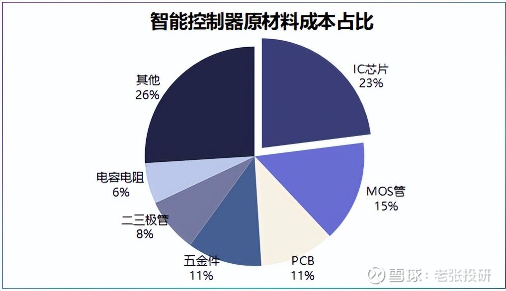 具体来看,和而泰业务支点就是智能控制器,其上游原材料为IC芯片、PCB、五金件等。其中,IC芯片占比约23%,是主要成本来源。