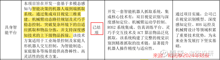 财报显示,公司研发了一套智能机器人抓取系统,其中包括双目识别、机械臂控制以及灵巧手交互等。除此之外,公司已结项研发项目中还包括边缘AI和端侧AI平台。