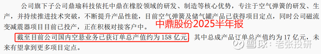 原因无他,空气悬挂系统获得的订单实在太多了!2025半年报显示,该板块已获订单总产值约158亿,远超其他版块。