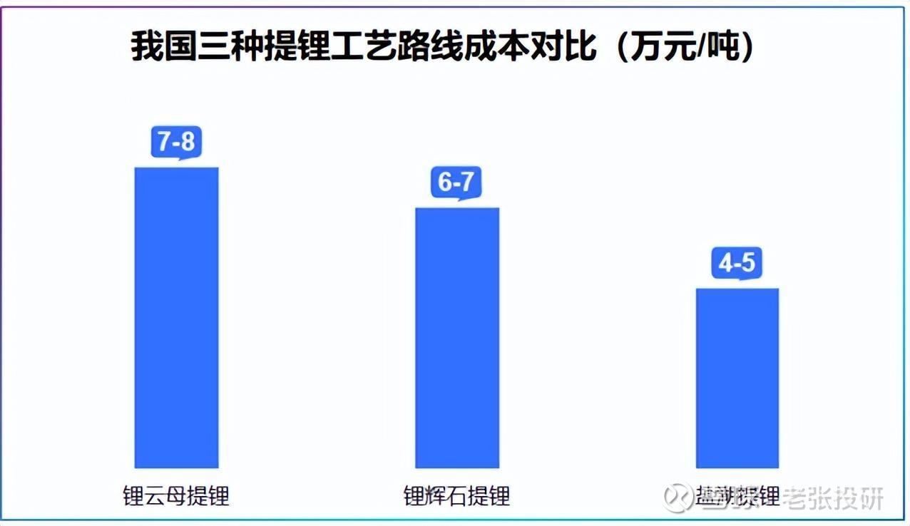 最重要一点,盐湖提锂是目前成本最低的工艺,每吨成本约4-5万元,比锂云母低约3万元。