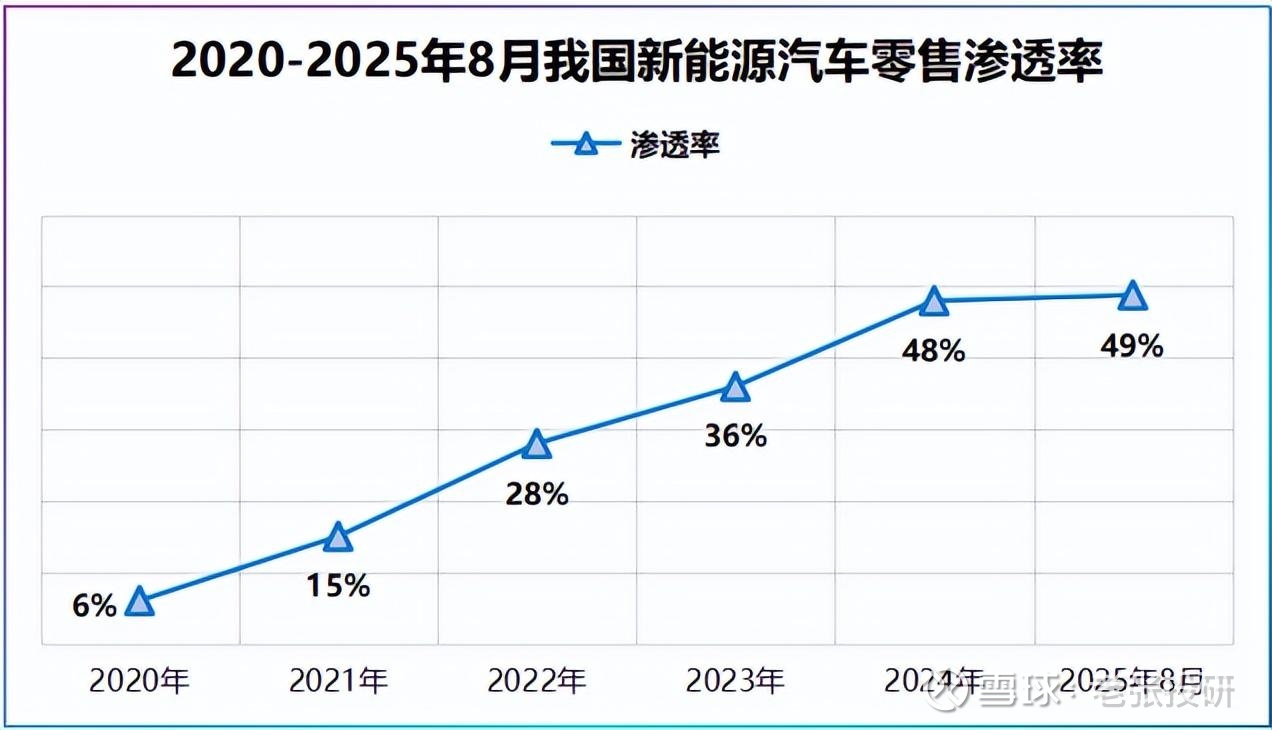 截至2025年8月底,我国新能源汽车累计销量达962万辆,8月渗透率升至49%。而9月下旬,问界M7、尚界H5、理性i6等新车陆续发布,或将增强碳酸锂需求预期。
