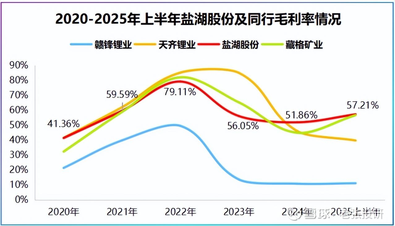 2025年上半年公司碳酸锂毛利率仍接近50%,超出藏格矿业、赣锋锂业、天齐锂业10多个百分点。