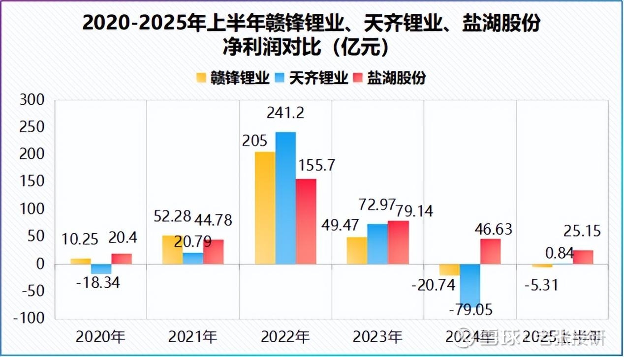 2024年赣锋锂业亏损20.74亿元,天齐锂业亏损79.05亿元,到了2025年上半年赣锋锂业仍处于亏损,天齐锂业扭亏达到0.84亿元。