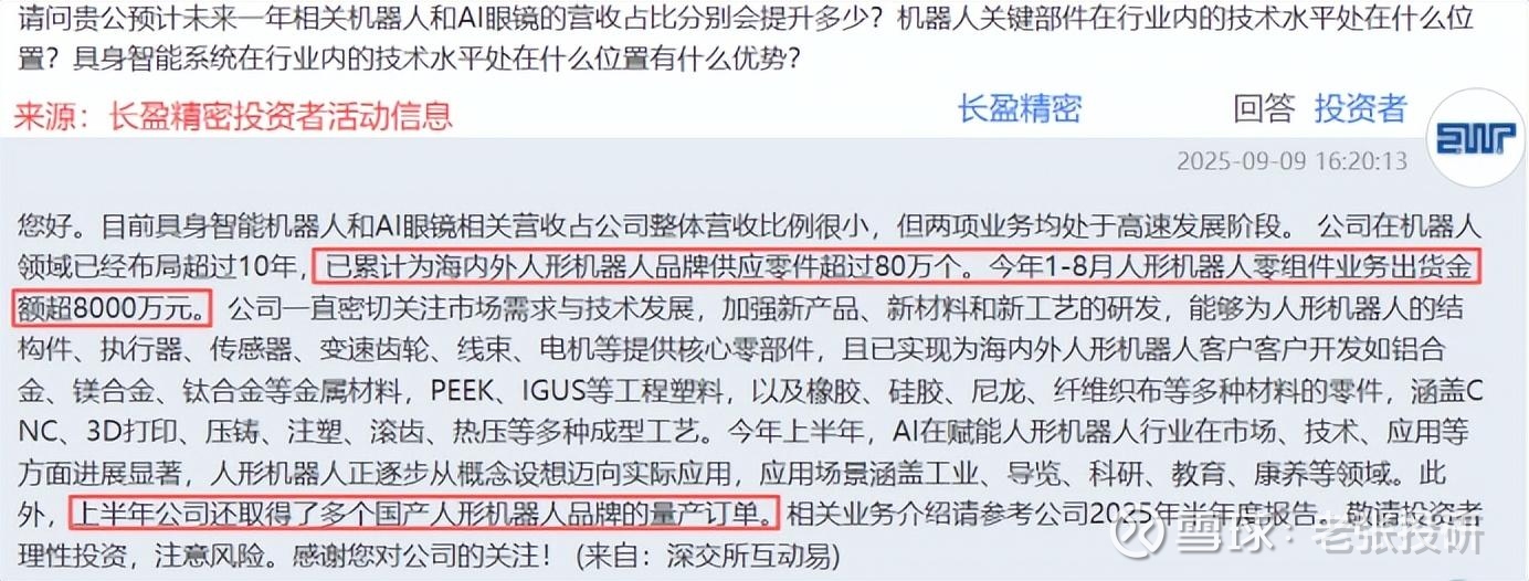 截至2025年8月,公司人形机器人零组件业务累计出货额超8000万元,已累计为海内外人形机器人品牌供应零件超过80万个,是人形机器人产业链少有能形成一定营收规模的消费电子企业。