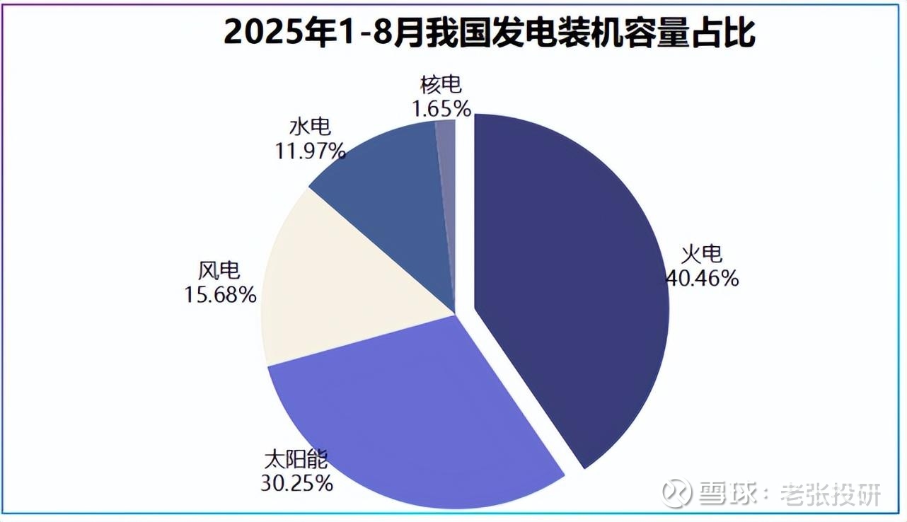 2025年1-8月,我国太阳能发电装机容量占全国发电装机容量的30.25%,风电装机容量占比达15.68%。